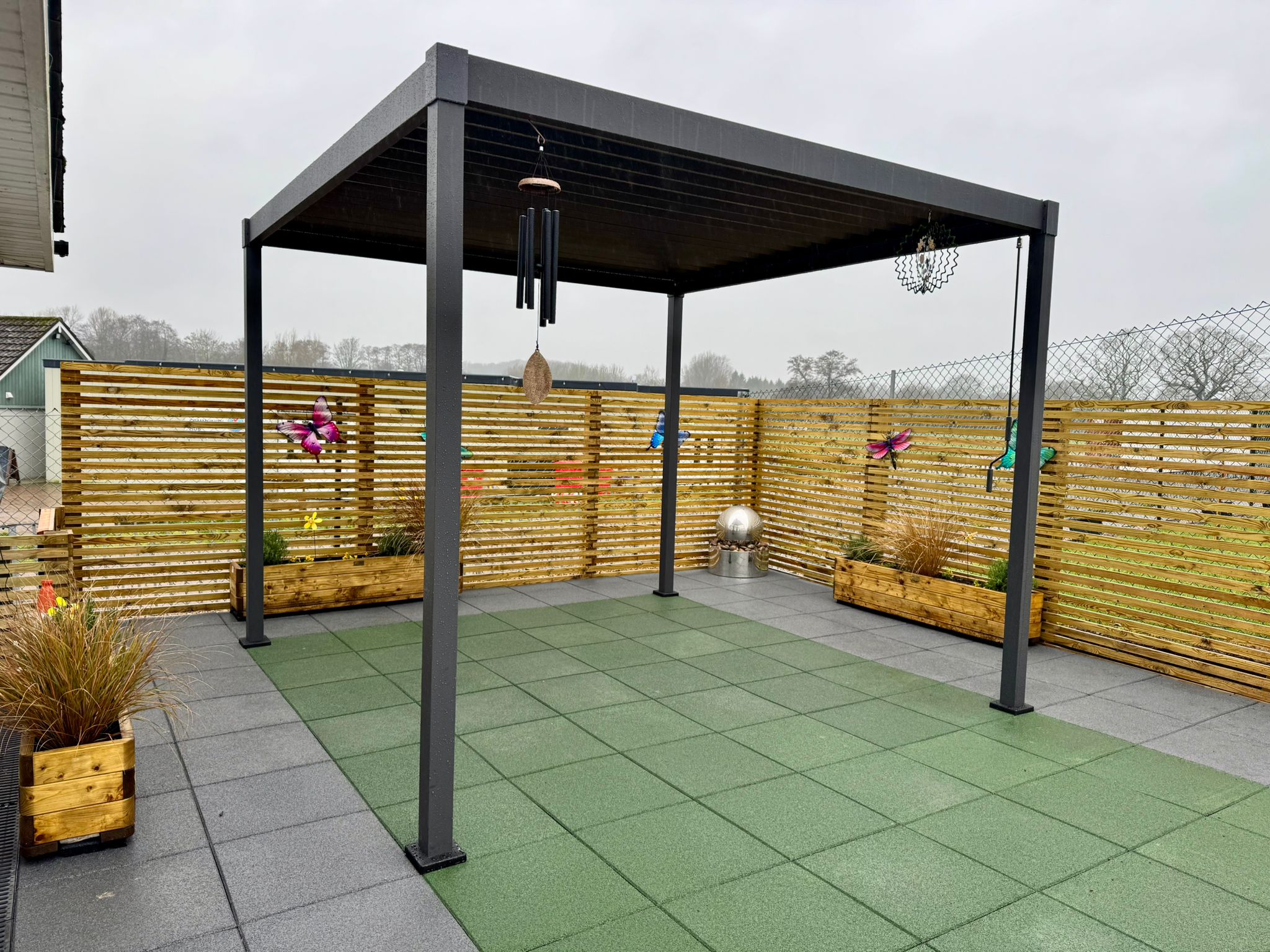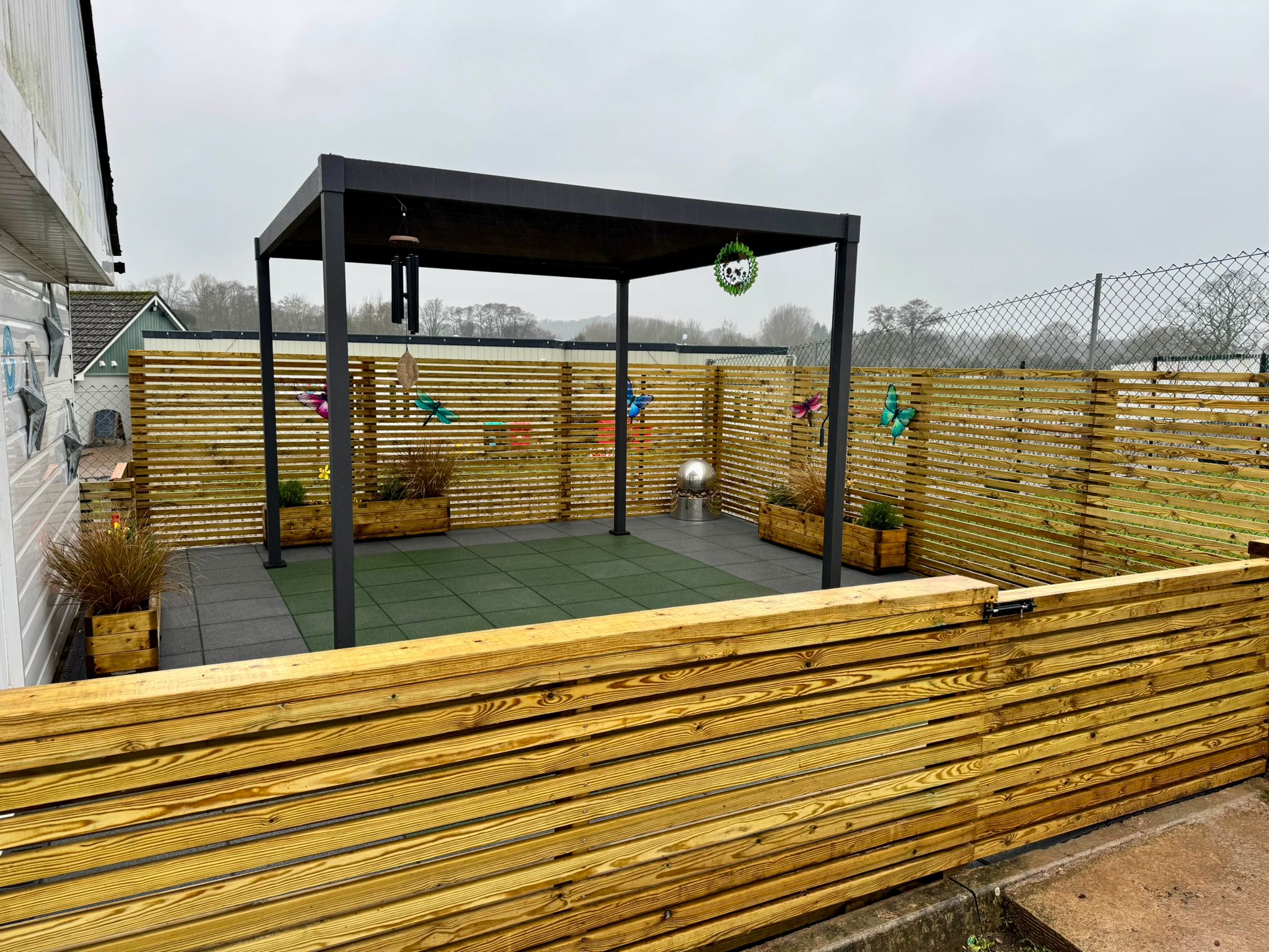 To encourage outdoor learning and sensory play, we installed a pergola and bespoke planed timber planters, filled with a thoughtfully selected mix of sensory plants. Fragrant lavender and rosemary, soft ornamental grasses, and colourful pansies, violas, and vibrant rudbeckia invite children to engage their senses and interact with nature. Finishing touches such as wind chimes and butterfly and dragonfly wall art add movement, colour, and interest, helping to create an engaging outdoor space that supports imagination, discovery, and early learning.