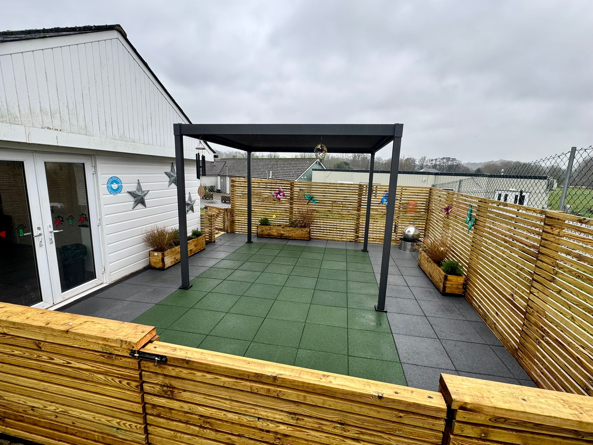 We were delighted to transform the outdoor space at Seren Fach Nursery in Ponthir, creating a safe, stimulating, and welcoming environment where young children can learn, play, and explore with confidence. Every detail of the project was carefully planned to ensure the space was both practical and inspiring. We installed brand-new redwood fencing and secure gates, along with durable safety rubber tiles to provide a safe surface where the children can play.